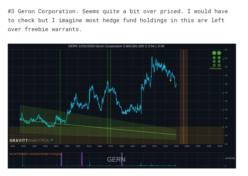 I also wrote about the top 5 hedge fund held stocks in our Top 5 Penny Biotechs (according to HFs). At the time, the list was $NUVB,$RLAY,$GERN,$SLRN and $AMLX.