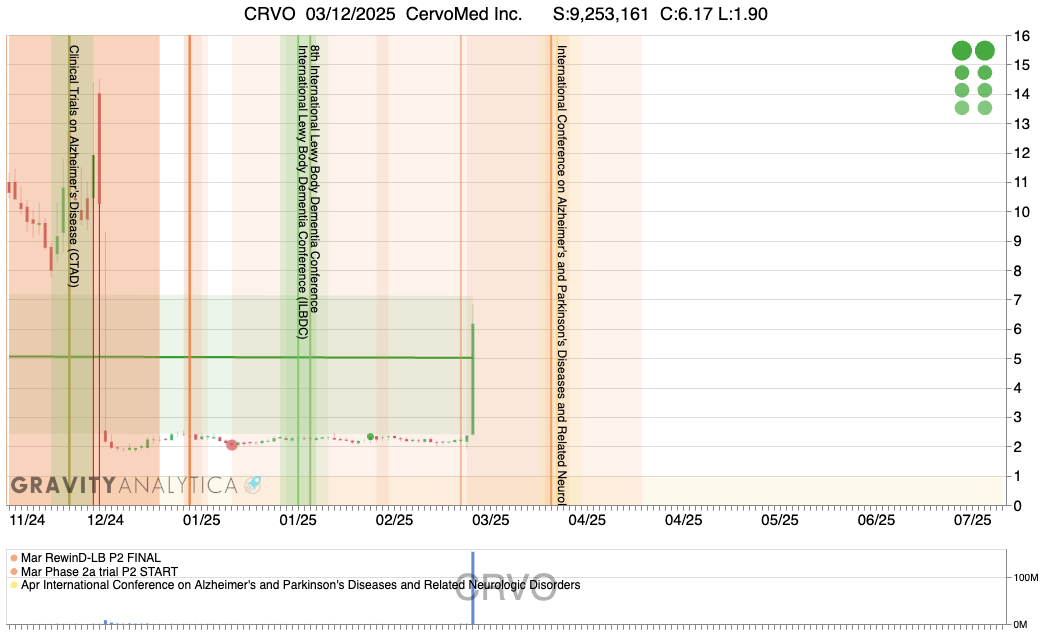 CervoMed (NASDAQ:$CRVO) which just moved recently from below the channel to just above the channel.