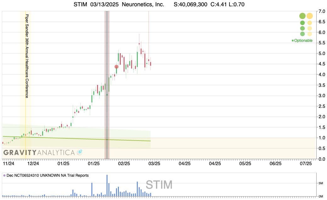 The first “runner” not directly related to a billionaire manipulator is Neuronetics (NASDAQ:$STIM) which was on model in the channel for most of last year. Historical chart provided below.