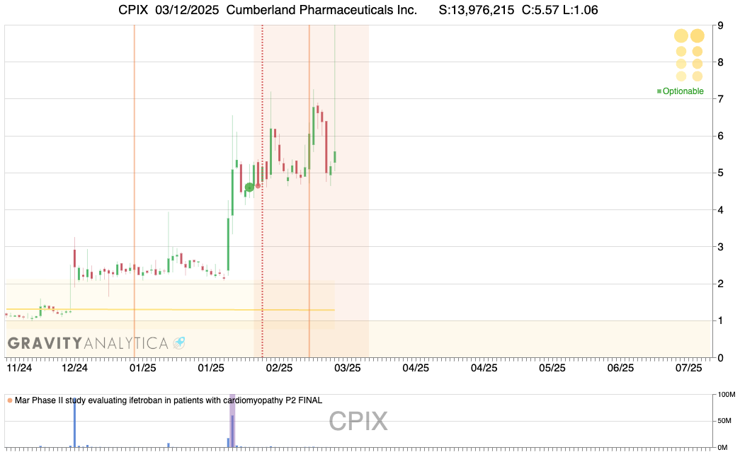 Cumberland Pharmaceuticals (NASDAQ:$CPIX) which also was a channel play. Historical chart below.