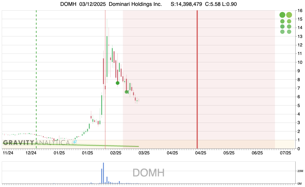 Dominari Holdings Inc (NASDAQ:$DOMH) a stock that took off because Eric Trump and Donald J. Trump Jr got involved and which has just sold off steadily since the news.