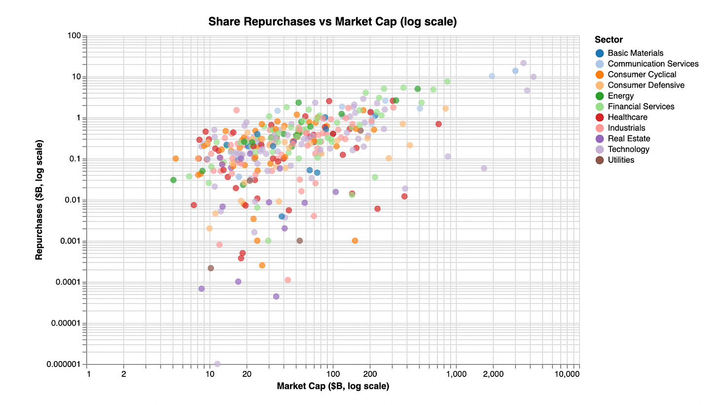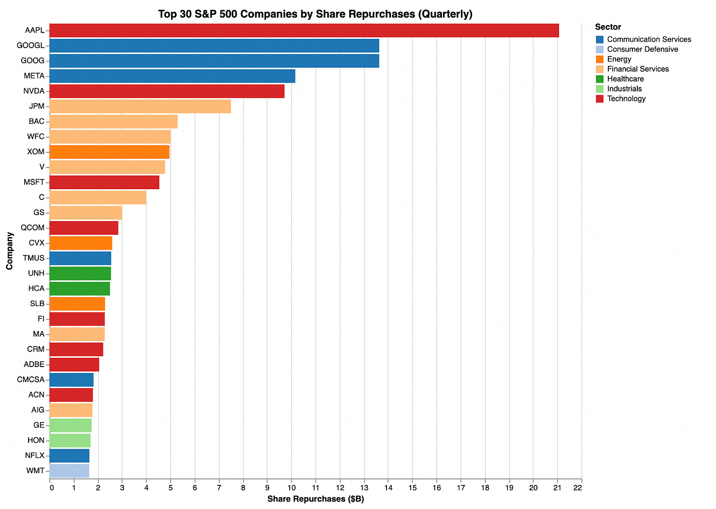Here are the share repurchases made during the latest quarter. This is why the market has been buoyant. And why historical P/Es are practically meaningless right now.