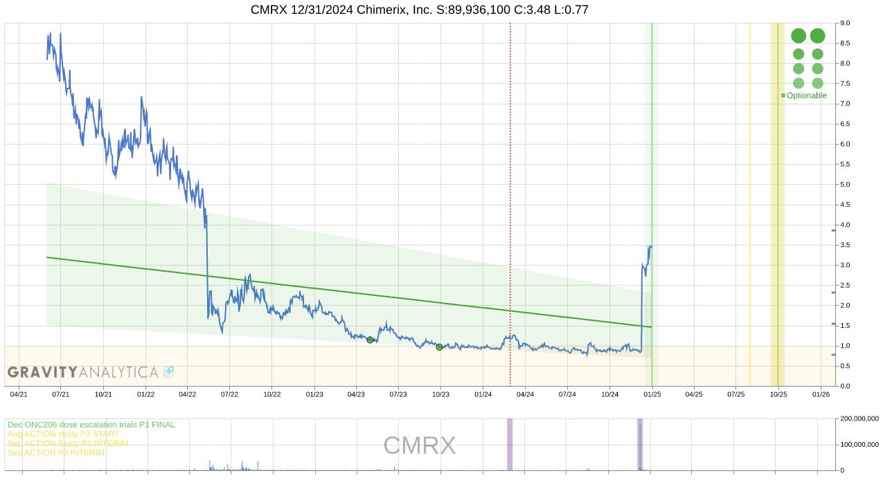 1st Place in the list is NASDAQ:$CMRX a stock we purchased in 2024 and discussed many times over the last year. It was below the channel and leading into a green event band.