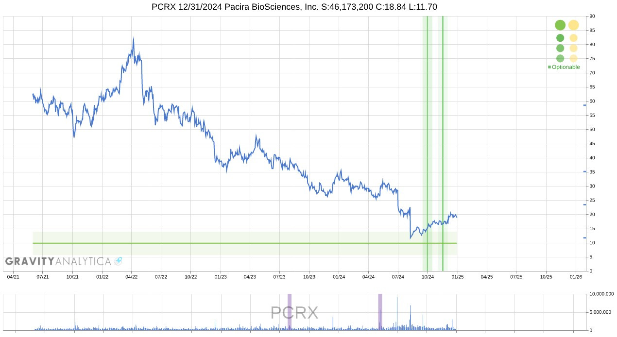 6th Place is NASDAQ:$PCRX which was an on channel buy late in 2024. Recently, funds have been exiting though.
