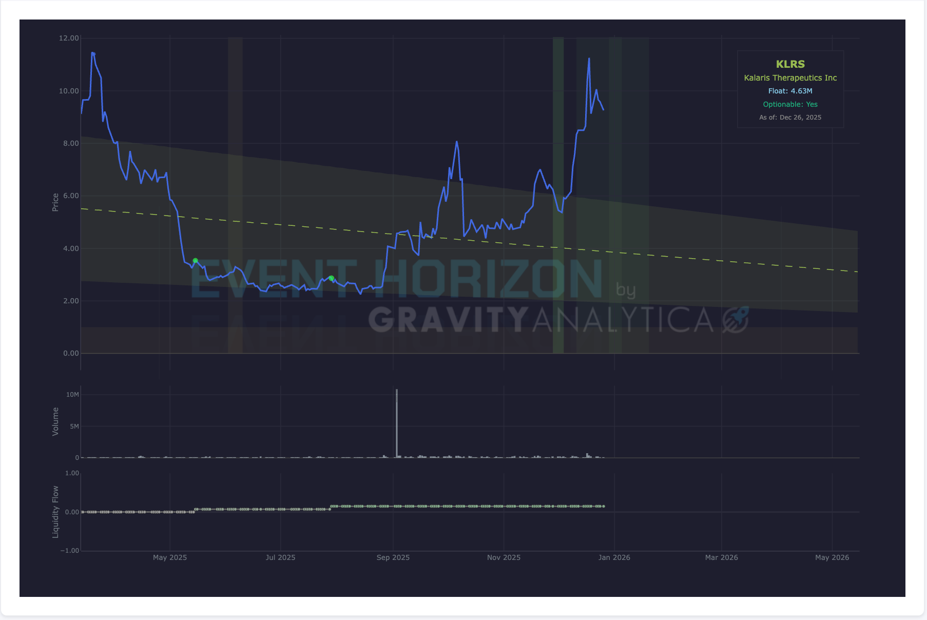 The best performer was NASDAQ:$KLRS which had a max gain during this time period of 375% and is currently up 270%. The second best performer NASDAQ:$KYTX had a max gain of 286% and is currently up 165%.