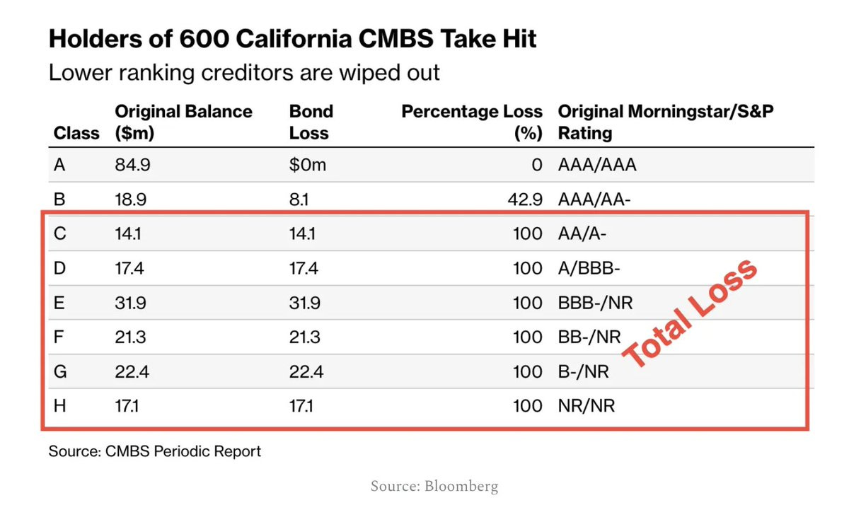 For example, just recently, investors in California Commercial Mortgage Backed Securities (CMBS) were wiped out entirely.