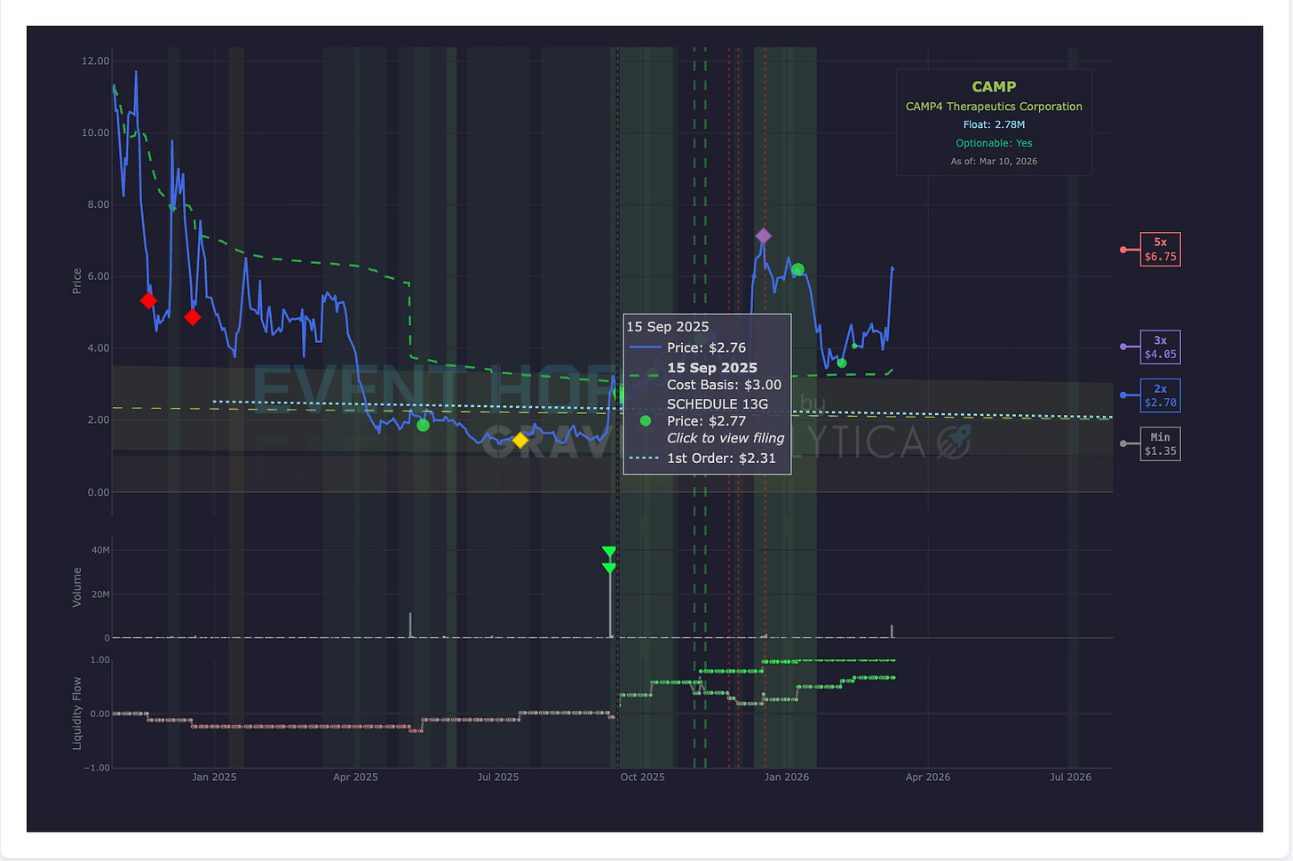 Here is CAMP4 Therapeutics (yes, this is a pun about 80s movies and the woods). Where I have marked is where NASDAQ:$CAMP ran the channel. That was a >100% move. If I remember correctly it was a 300% move.