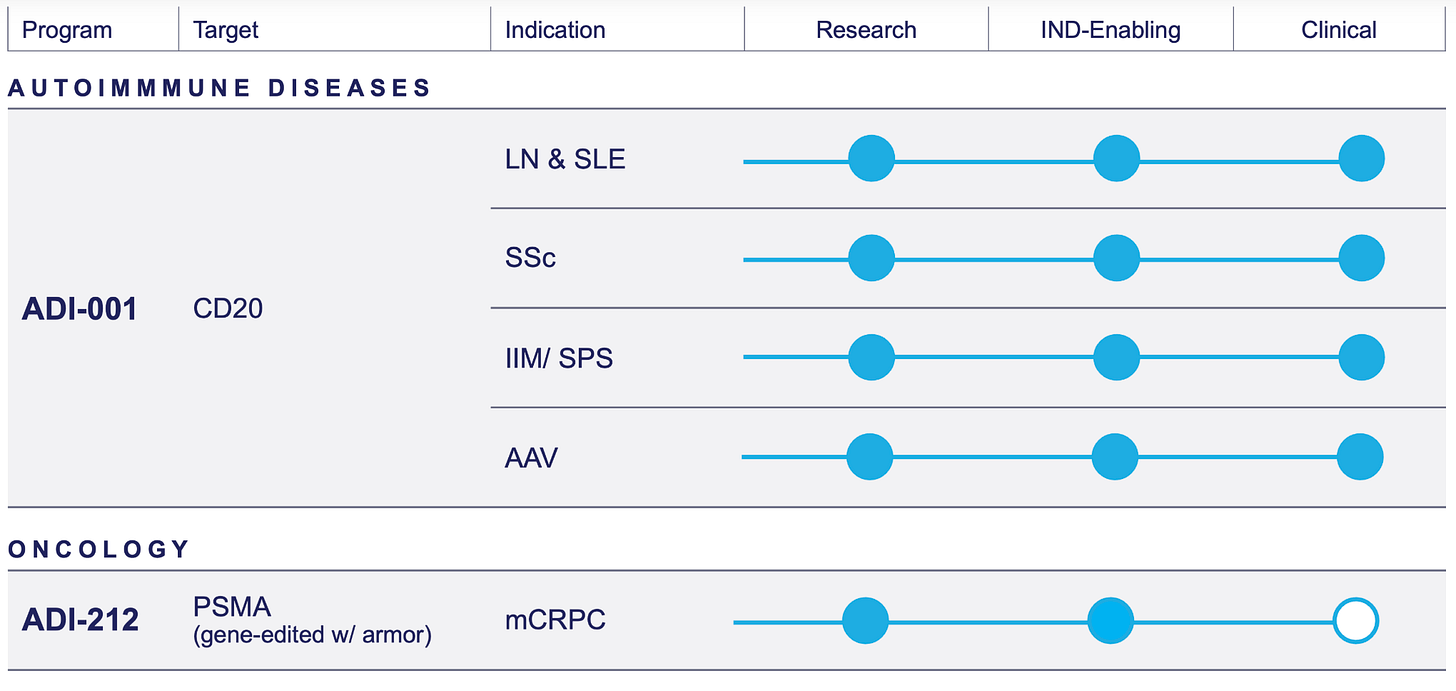 Adicet reported cash, cash equivalents and short-term investments were $125.0 million and that it recently discontinue the development of ADI-270. Basically a single drug.
