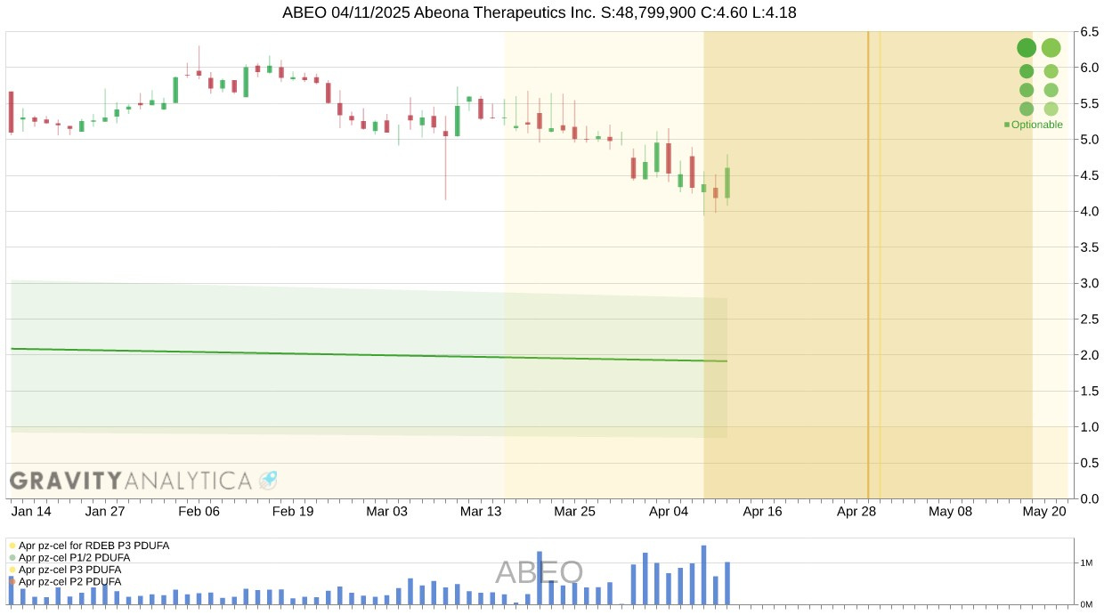 Abeona Therapeutics NASDAQ:$ABEO has a PDUFA scheduled for April 29 and was confirmed.This is optionable but well outside the channel.