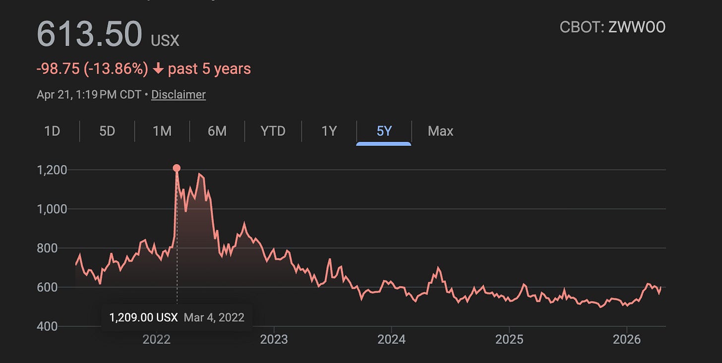 With the spring planting season already under stress in Asia due to lack of fertilizers a weak US winter wheat harvest would be awful.
