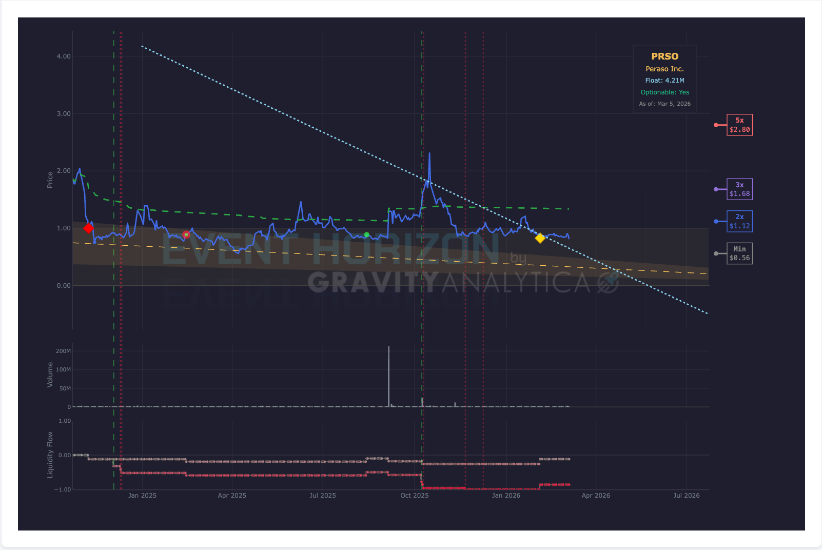 Peraso ($PRSO) took off today. It recently tripped ACC and was riding the $1.00 threshold. Totally missed this one. The SEC rule change around reverse splits appears to have made the $1.00 delinquency threshold more solid than in previous years. This is an easy screen for anyone to find these stocks.
