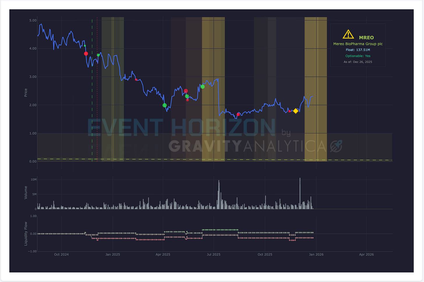 Mereo Biopharma NASDAQ:$MREO was one such stock. It actually tripped accumulation/consolidation before the recent run but was nowhere near our entry channel. Today, it fell 90%. The Yield symbol denotes a binary event is likely. All or nothing.