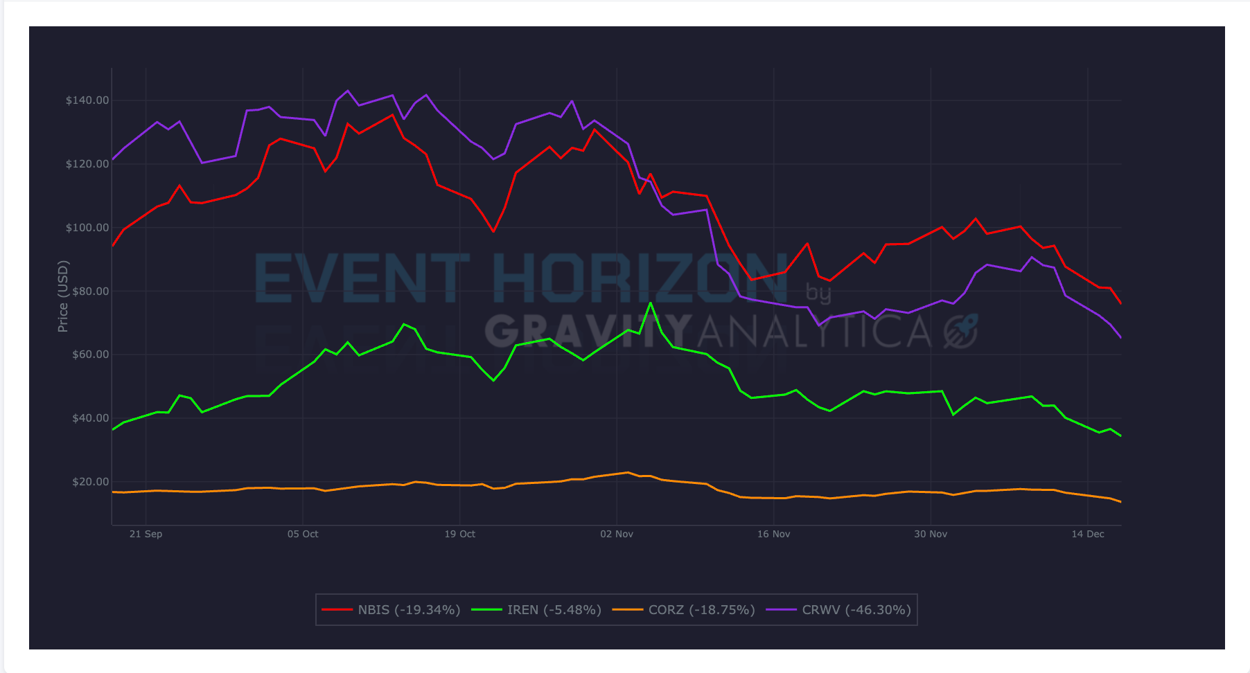 Above are the charts of the big 4 data center plays. These stocks are already down 50% from their highs in October (pre Burry, P.B.)