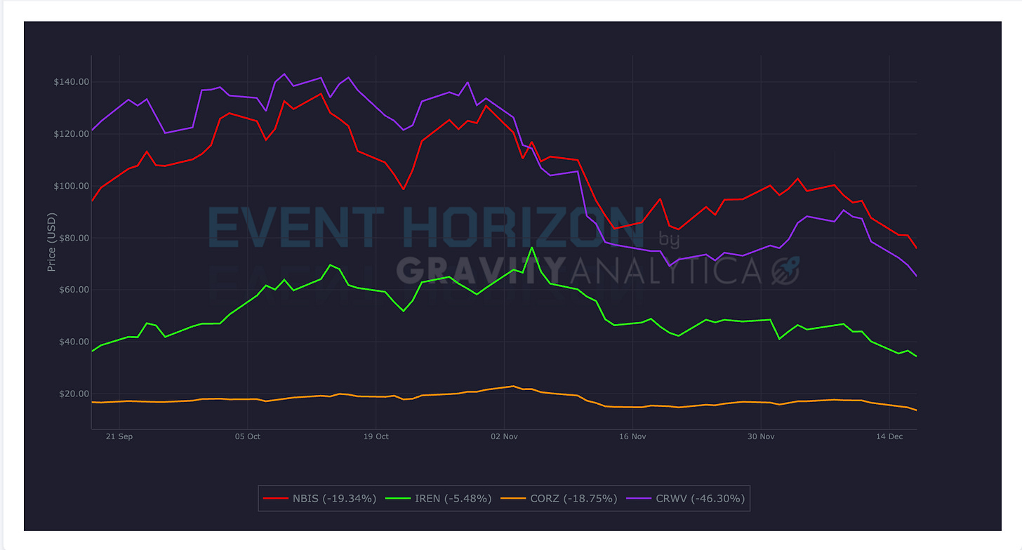 The probability of CoreWeave missing a bond payment is 54% (as of last night when I did the math) over the next five years (which is typically the duration of bonds.) This is really more a reflection that banks/individuals loaned CoreWeave money at too low an interest rate because they failed to properly gauge the risk. Loaning a company that was just trying to mine bitcoin last week billions of dollars today is pretty dumb.