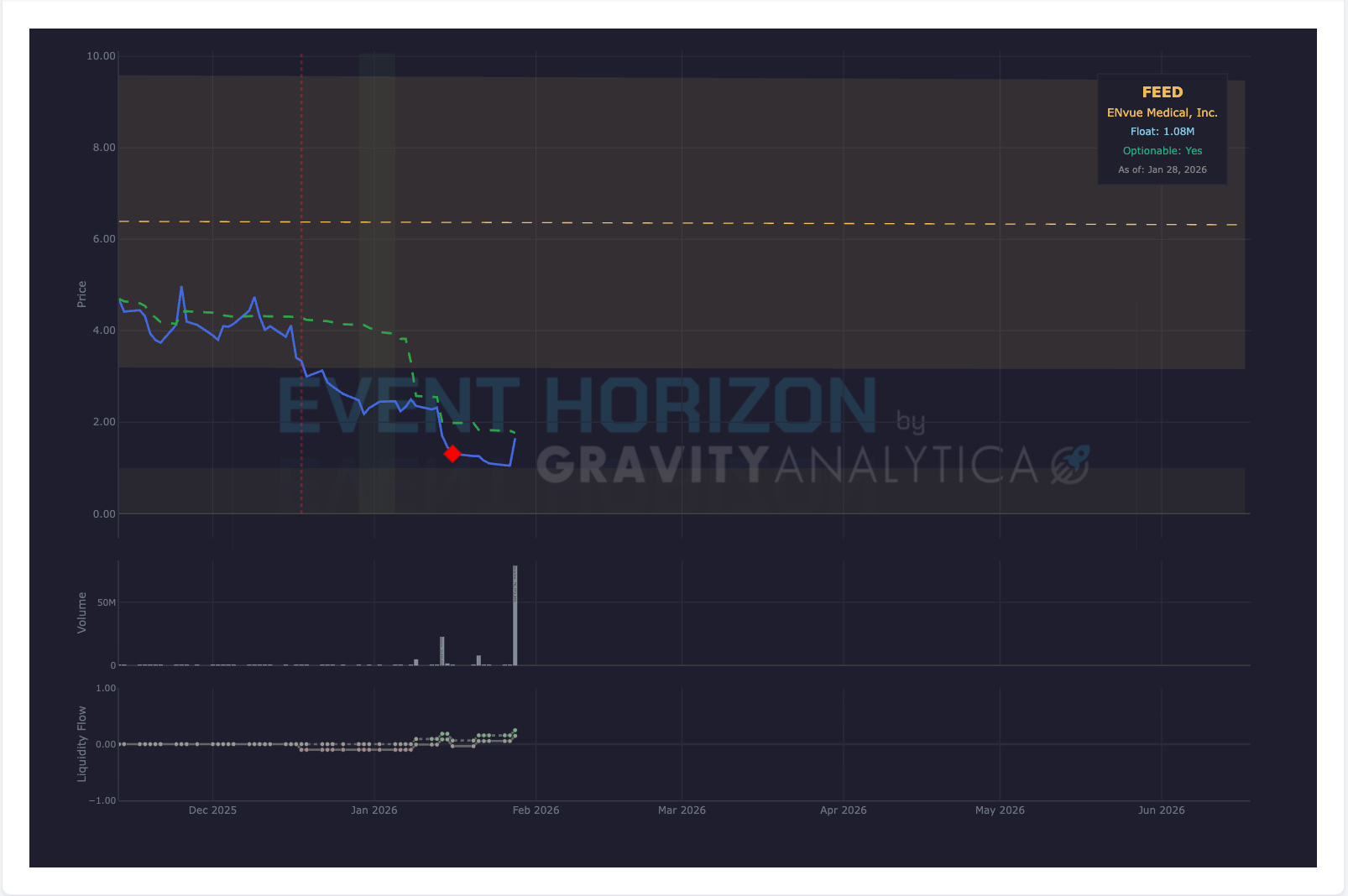 Envue Medical popped. It was below the channel yesterday and still is. Code is showing yellow corporate risk on this one but was still on-model.