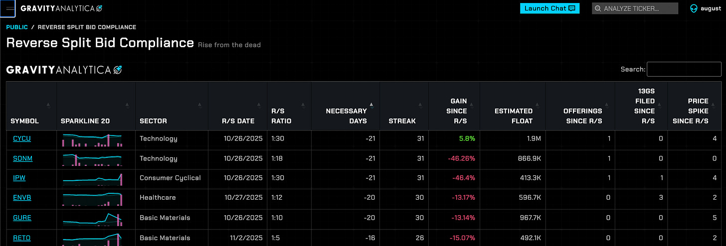 NasdaqCM:$ENVB moved up premarket over 100%. We tracked post-RS stocks on the home page to keep track of low floats for 20 days post-RS. The news was patent related. Here is the link to that news.