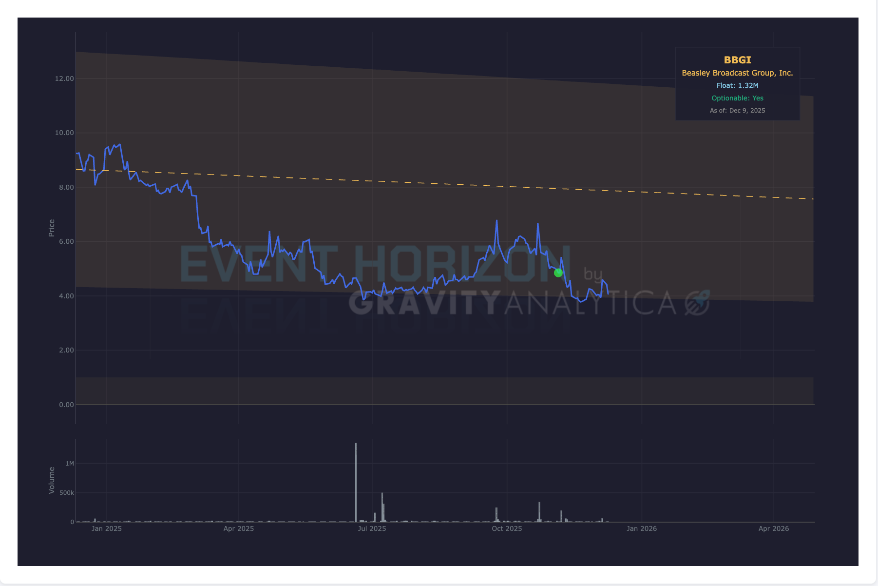 NasdaqCM:$BBGI ran 400%. The stock recently and very briefly dropped below the channel. The only news today was the election of a new board member and I don’t see a direct connection to Trump in her resume.