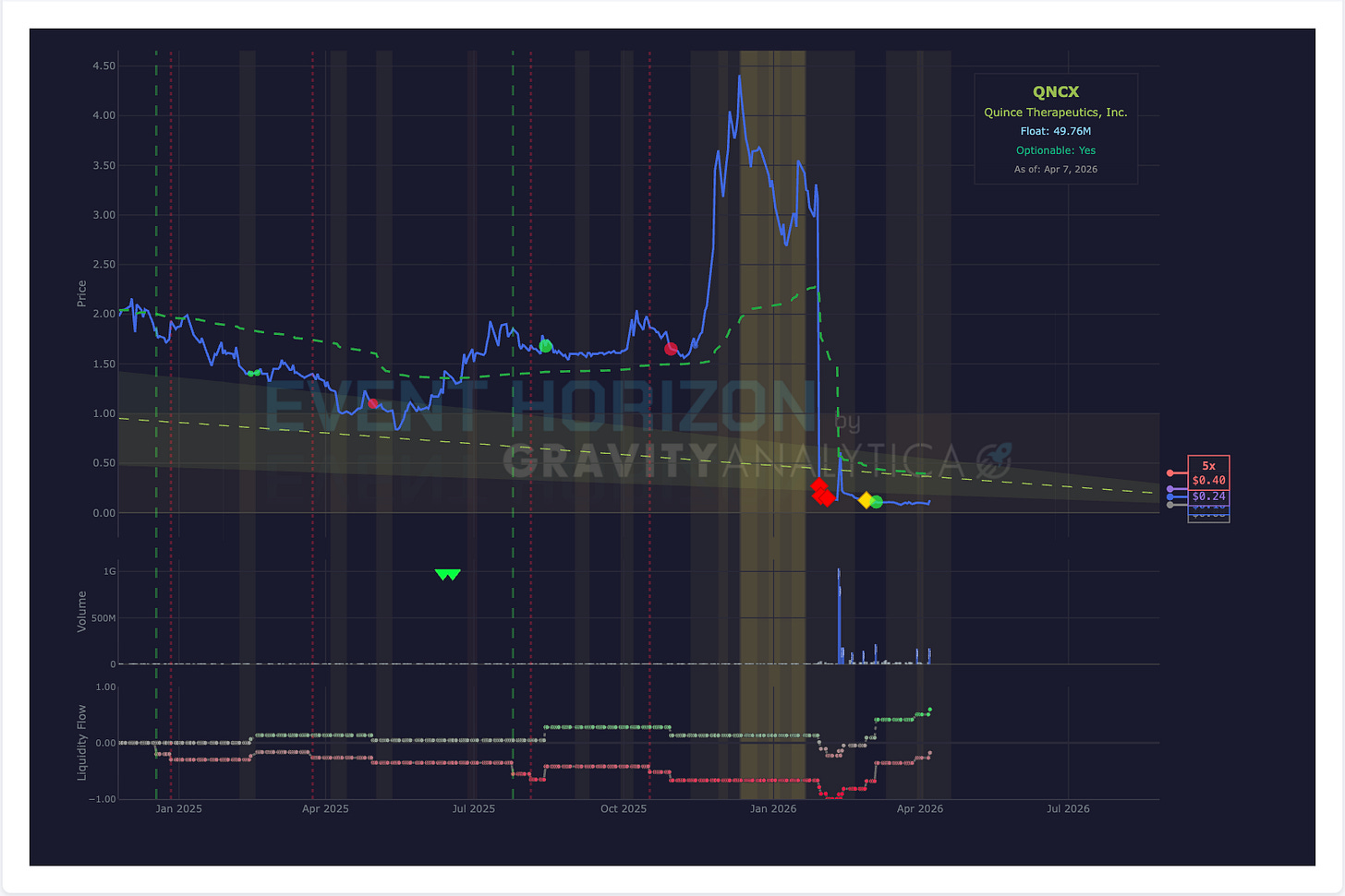 Quince Therapeutics (NASDAQ:$QNCX) took off. Likely because of speculation it would make a good shell for some better company to slide into. This is the same play as IO Biotech, which didn’t work at that well and declared bankruptcy. But, QNCX did move 100% this morning. What likely matters here is if the debt is convertible and if the debt holders a banks (like in the case of IOBT) or shady guys who collect Rolexes.