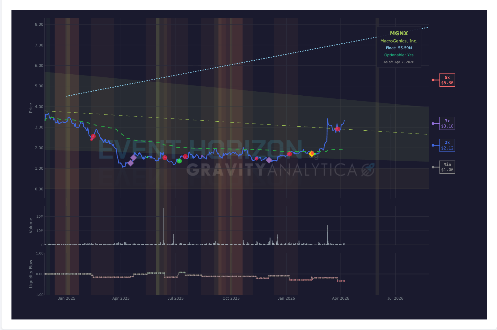 The FDA removed the partial clinical hold on MacroGenics (NASDAQ:$MGNX) after-hours today. We have been buying this for quite awhile and will hold at least through the clinical update period sometime this Summer. Probably the most obvious chart you can get. Fell completely below the channel, tripped BOB three times and the ACC/Consolidation right before doubling.