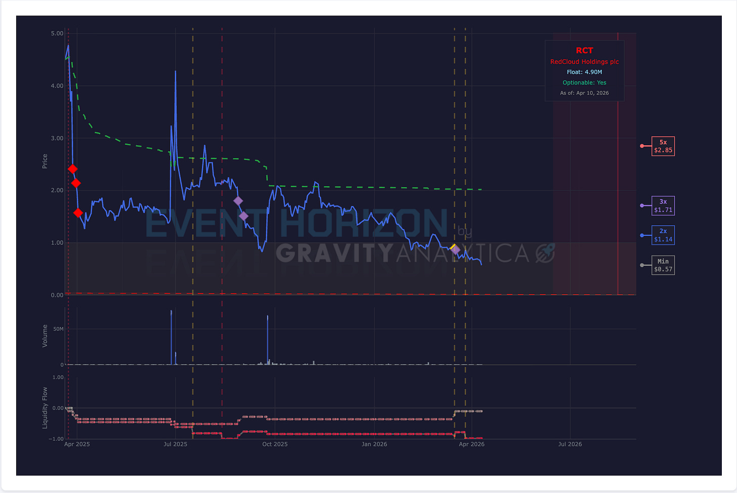 A company called RedCloud took off this morning on news it was installing servers in Saudi Arabia. We did not own this stock but it did just recently trip BOB ΔLiquidity (purple diamond) and ACC/Consolidation a few days ago so it was primed and the market was expecting something to happen.