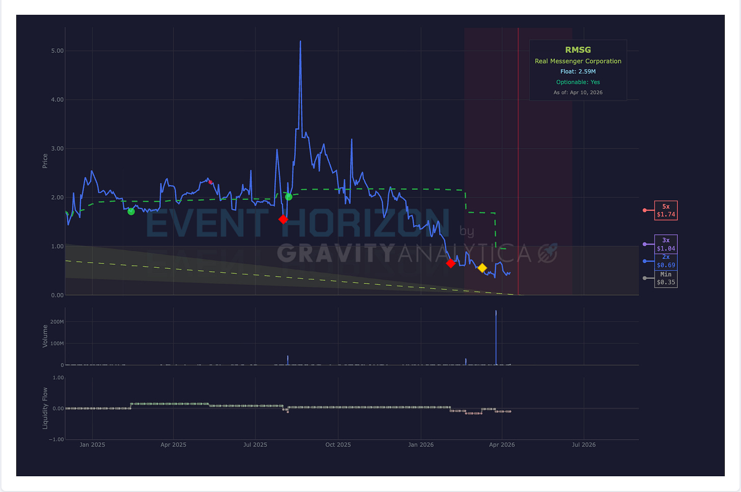 Also running premarket was Real Messenger Corporation which was in an FST (red predicted volatility event window) and also tripped ACC/Consolidation recently. I don’t see any news on this one. But, the code saw something and up she went 100% pre-market. And then really took off. Don’t look. It will make you tear up a bit.